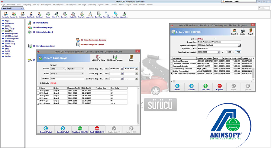 * Araç ve imtihan güzergah kayıtlarını girebilir,